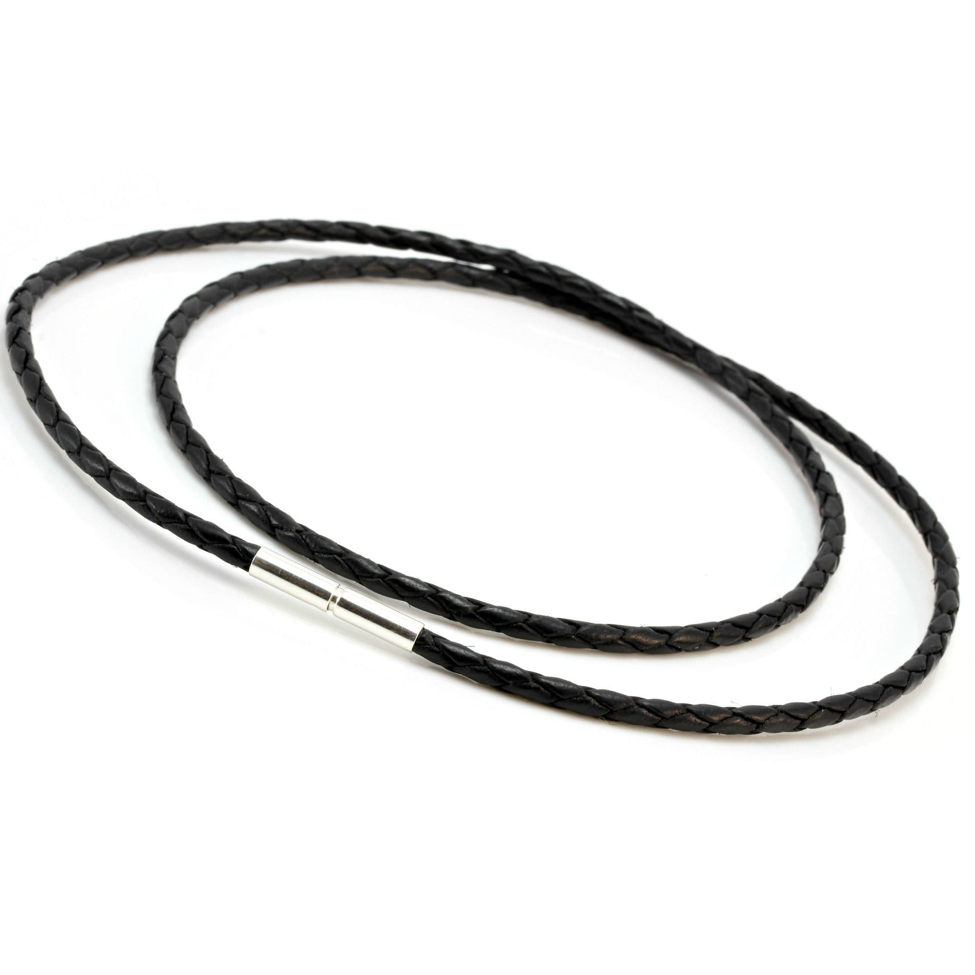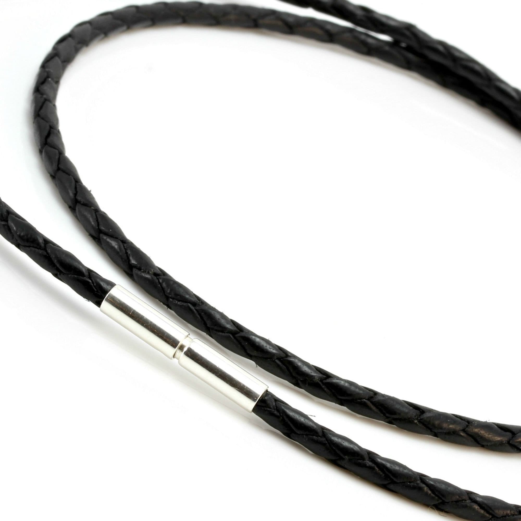 3mm Braided Leather Necklace With Sterling Silver Twist Clasp-Black