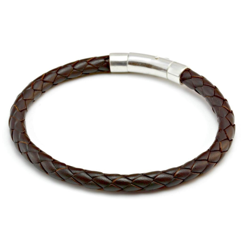 Braided Leather Bracelet With Sterling Silver Trigger Clasp-Dark Brown