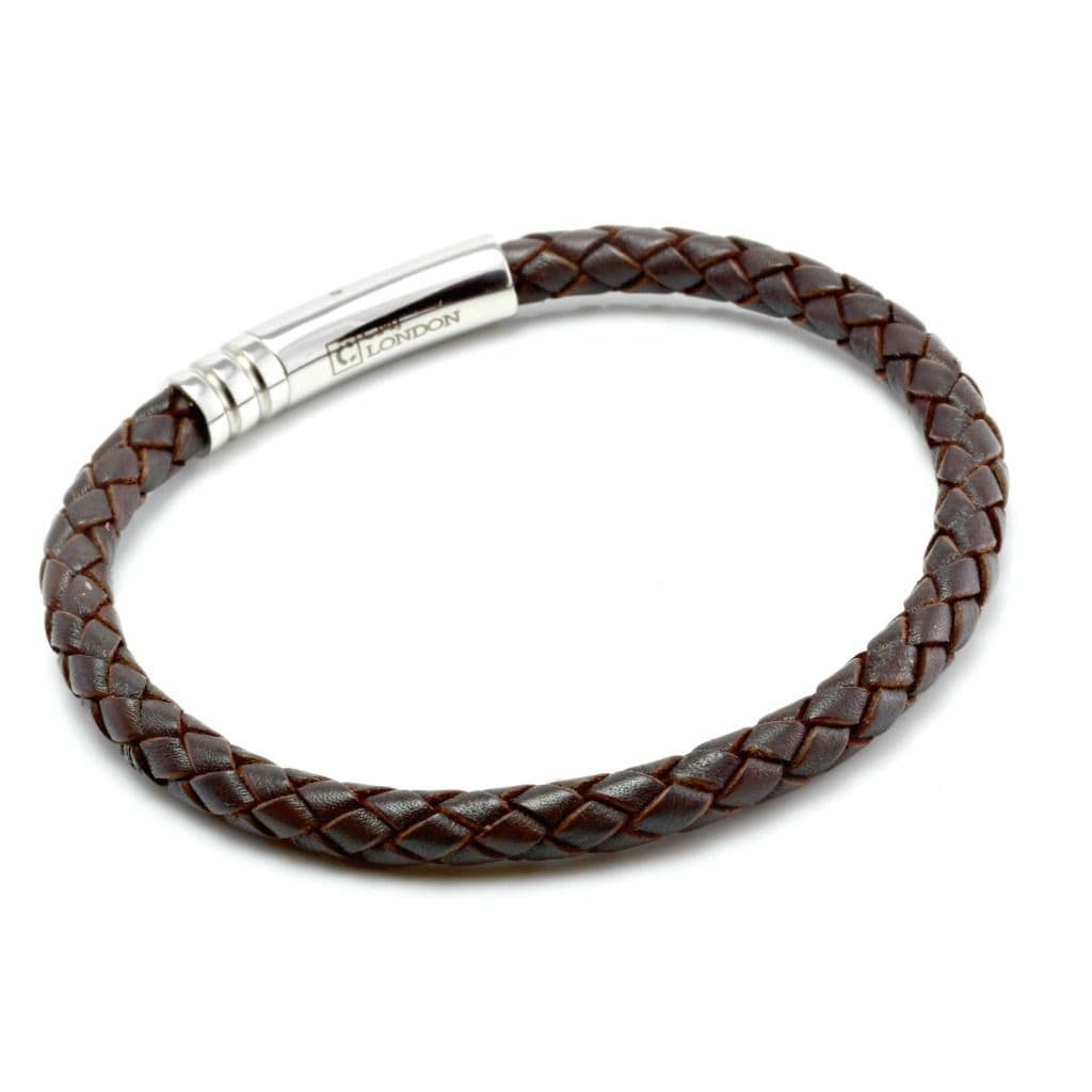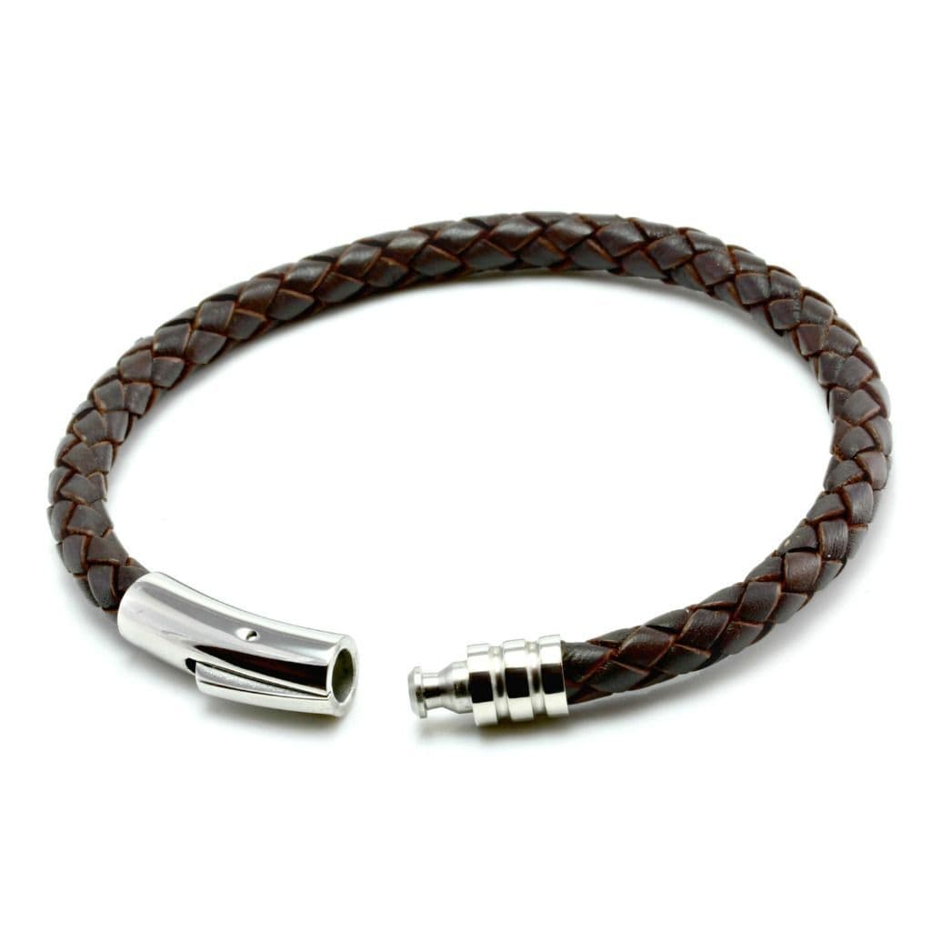 Dark Brown Braided Leather Bracelet With Stainless Steel Trigger Clasp