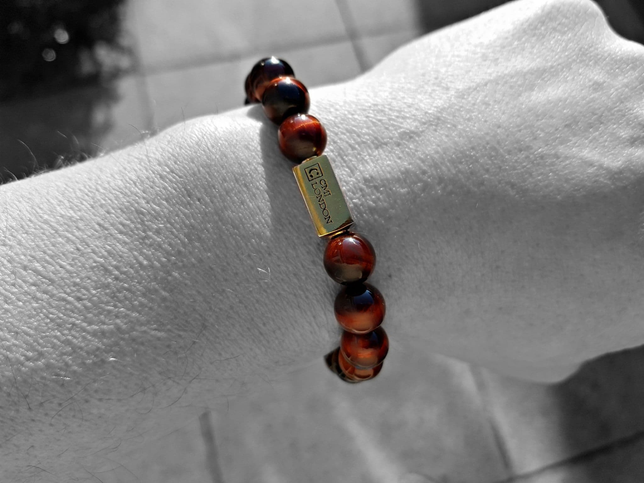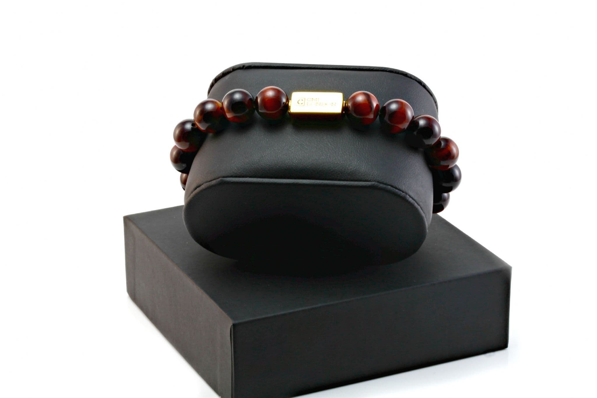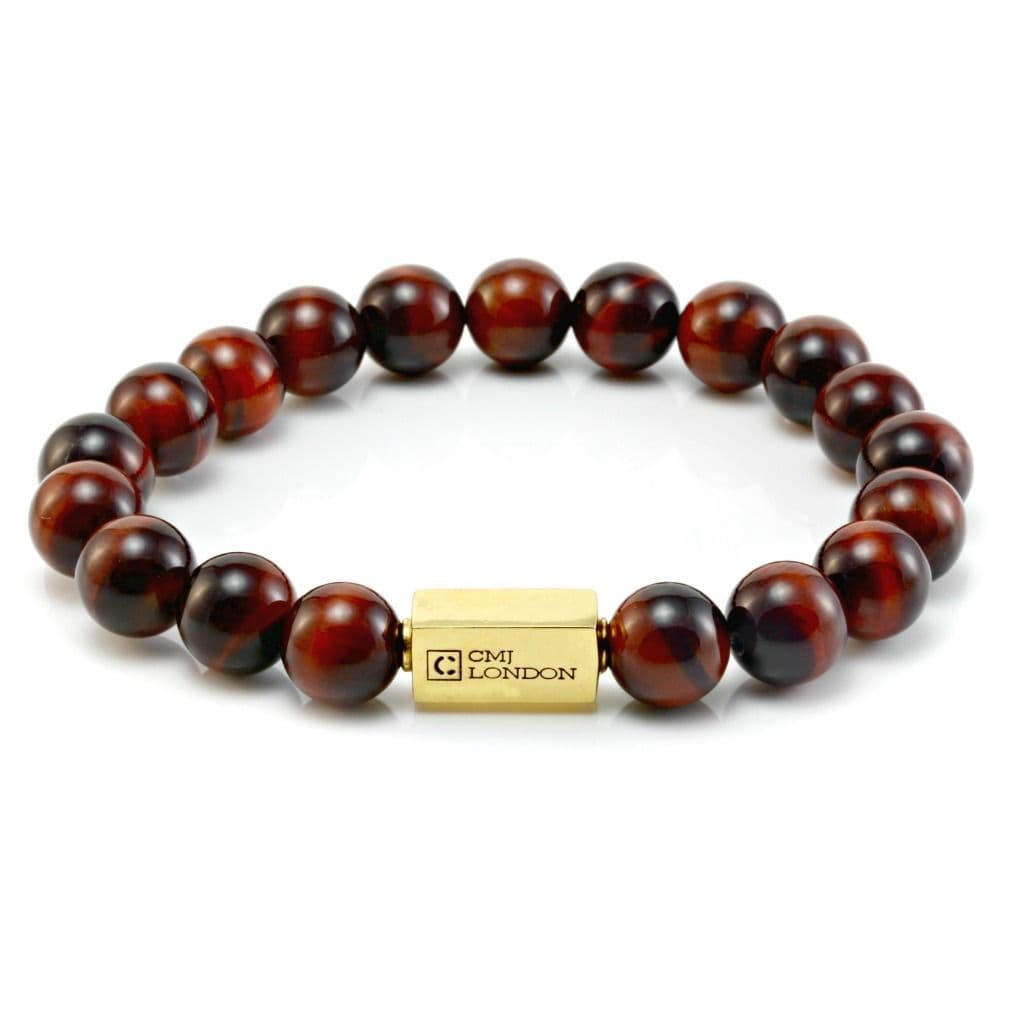 Mens Essential Red Tigers Eye & Gold Bracelet