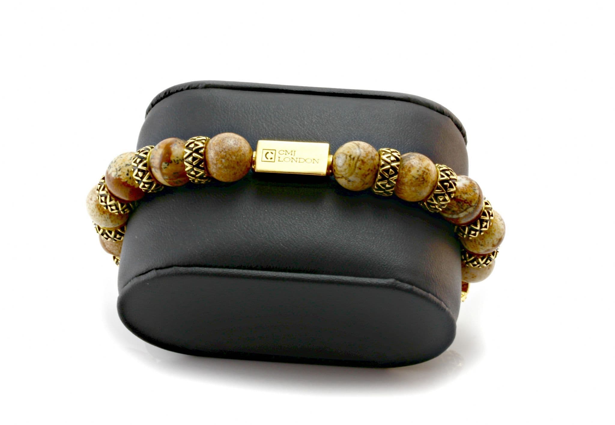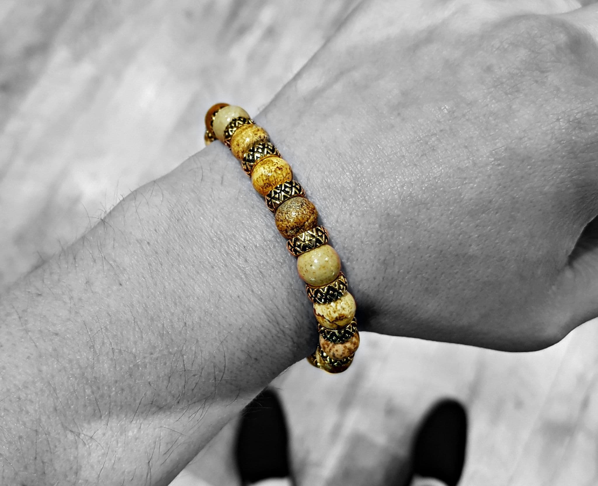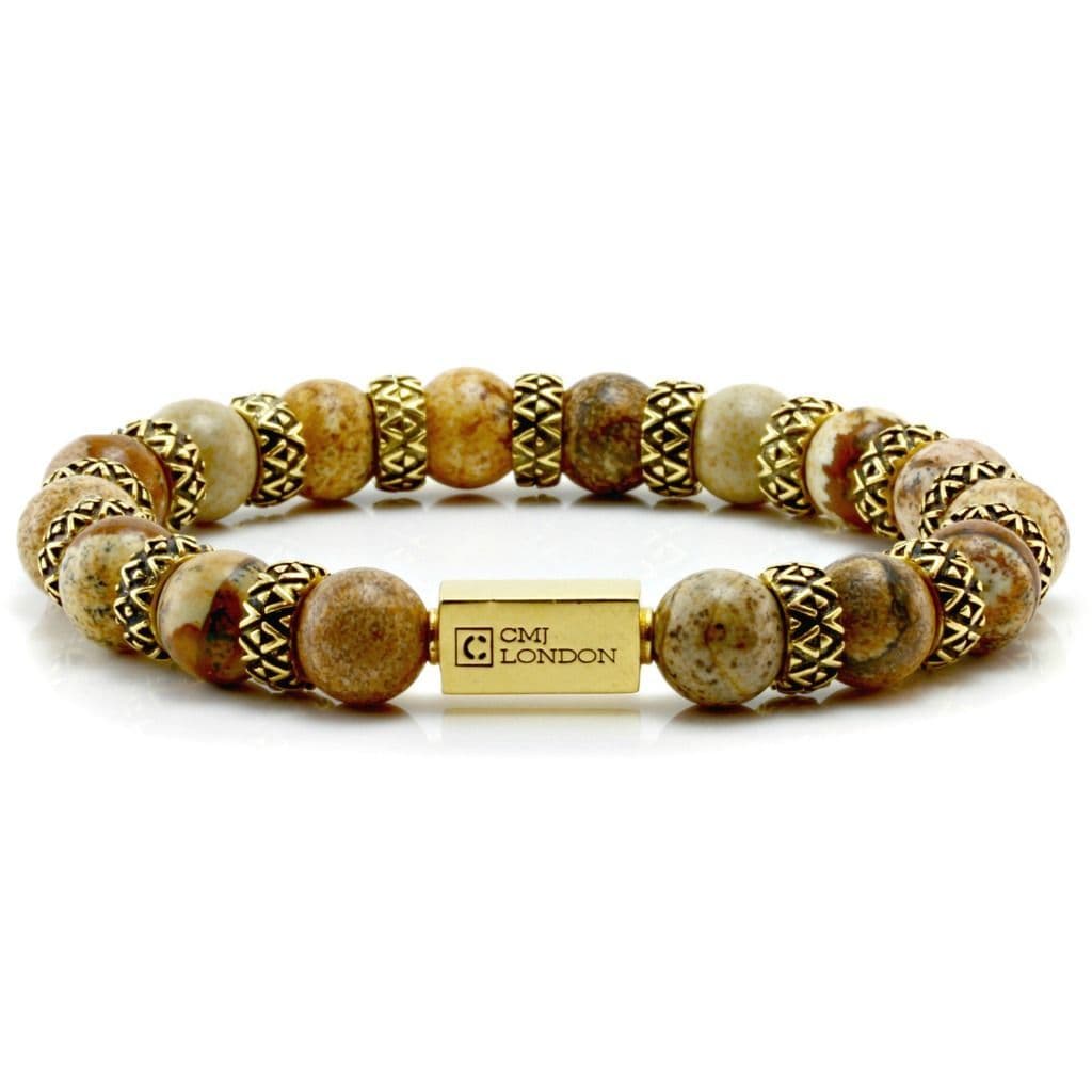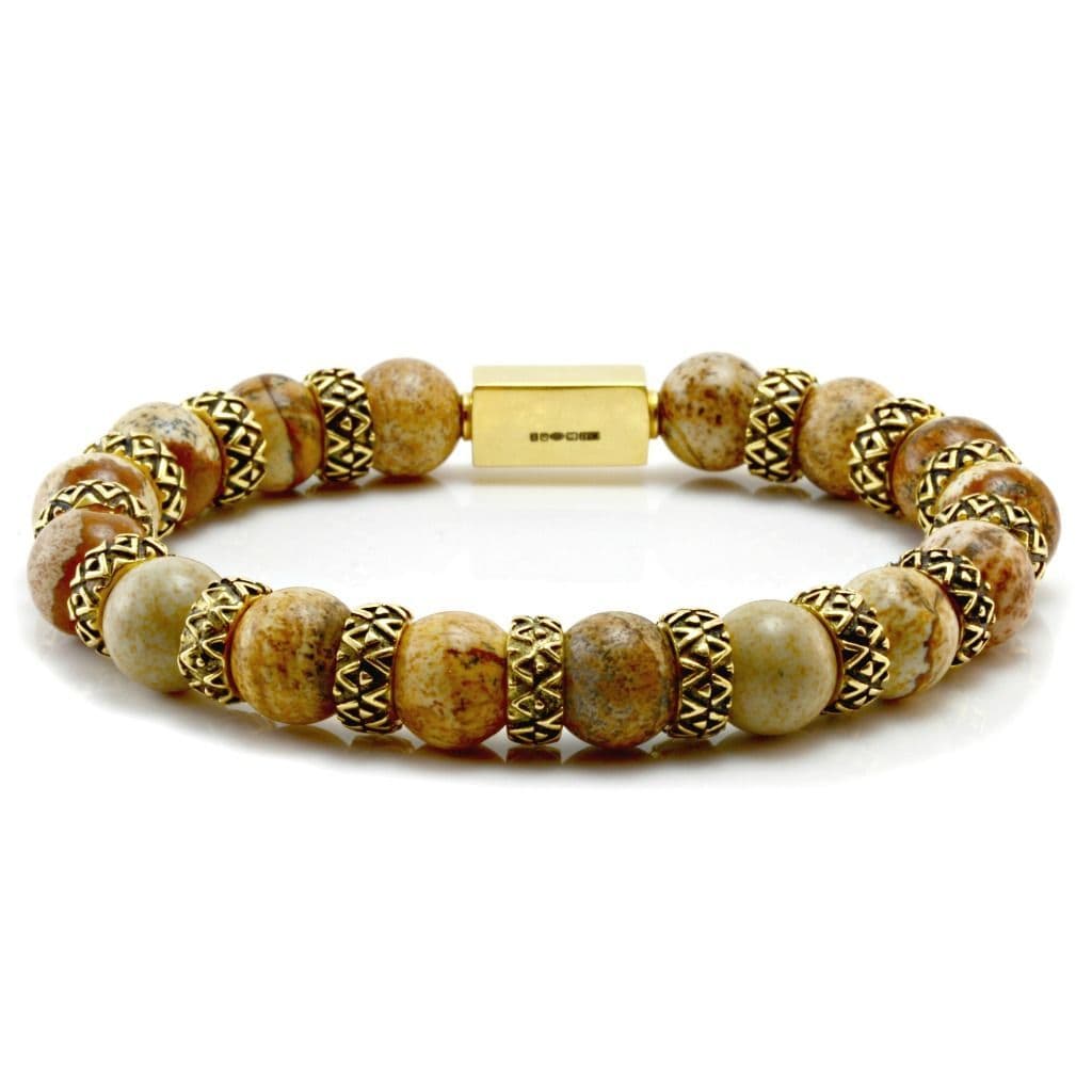 Mens Premium Picture Jasper & Gold Bracelet
