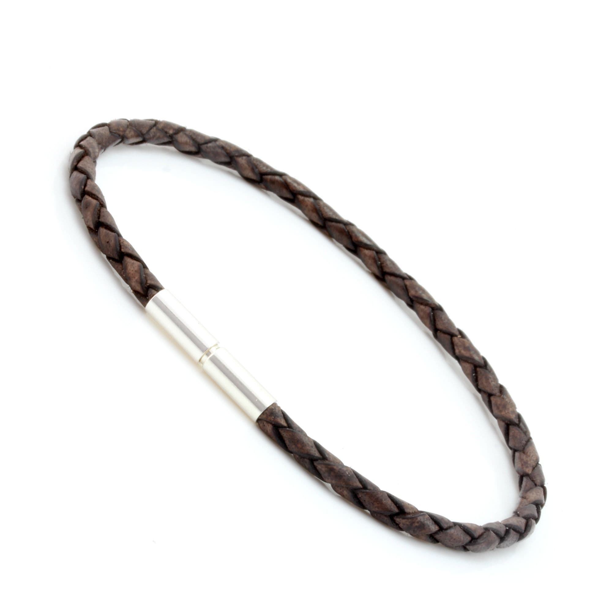 Slim Braided Leather Bracelet With Silver Twist Clasp